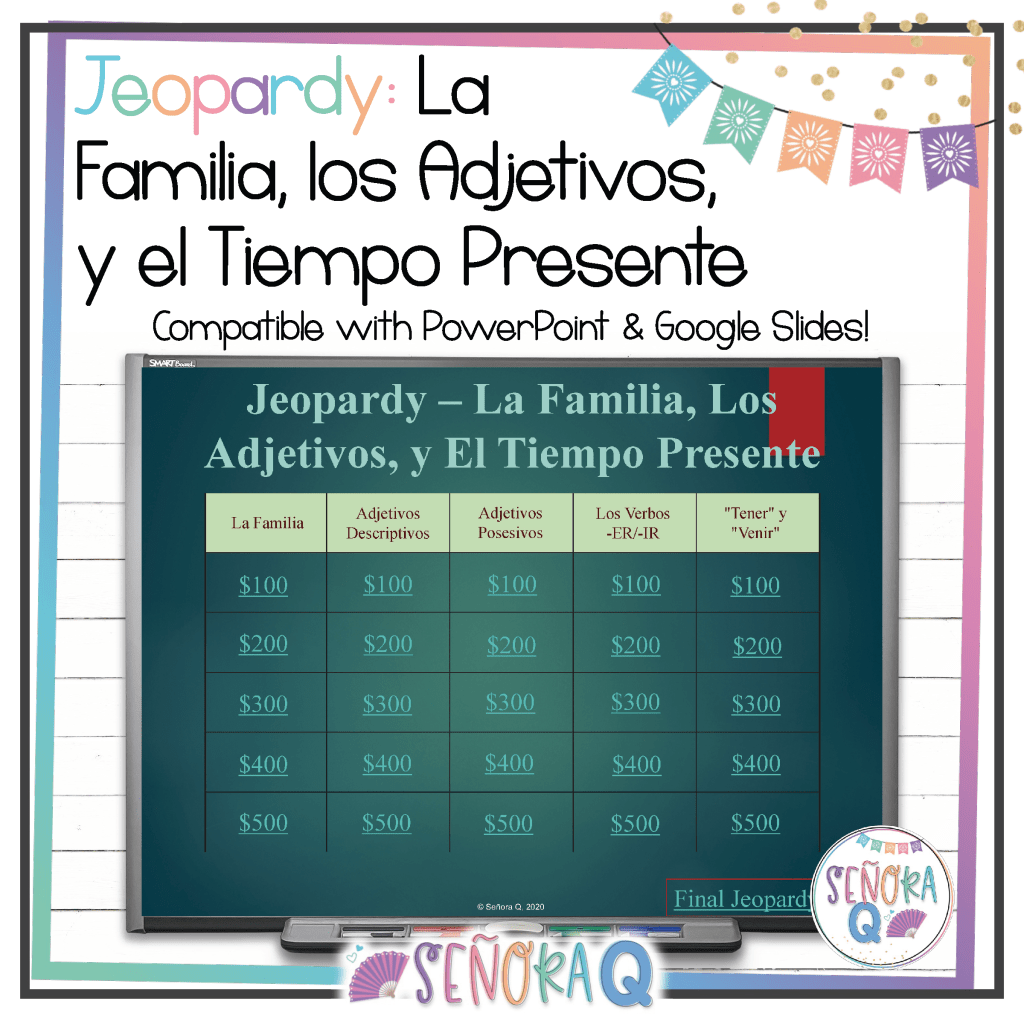 One of the reasons I love this activity so much is that, as students work together with their groups, you’ll see them reason together why sentences are right or wrong. For example, if you’re studying family and adjectives, one student in a group could put this together: “Mi hija es alto.” However, another group member will likely point out that “alto” will not work because “mi hija” is a girl, and so another adjective needs to be used. This is excellent to review the concepts that students will encounter on their finals!
