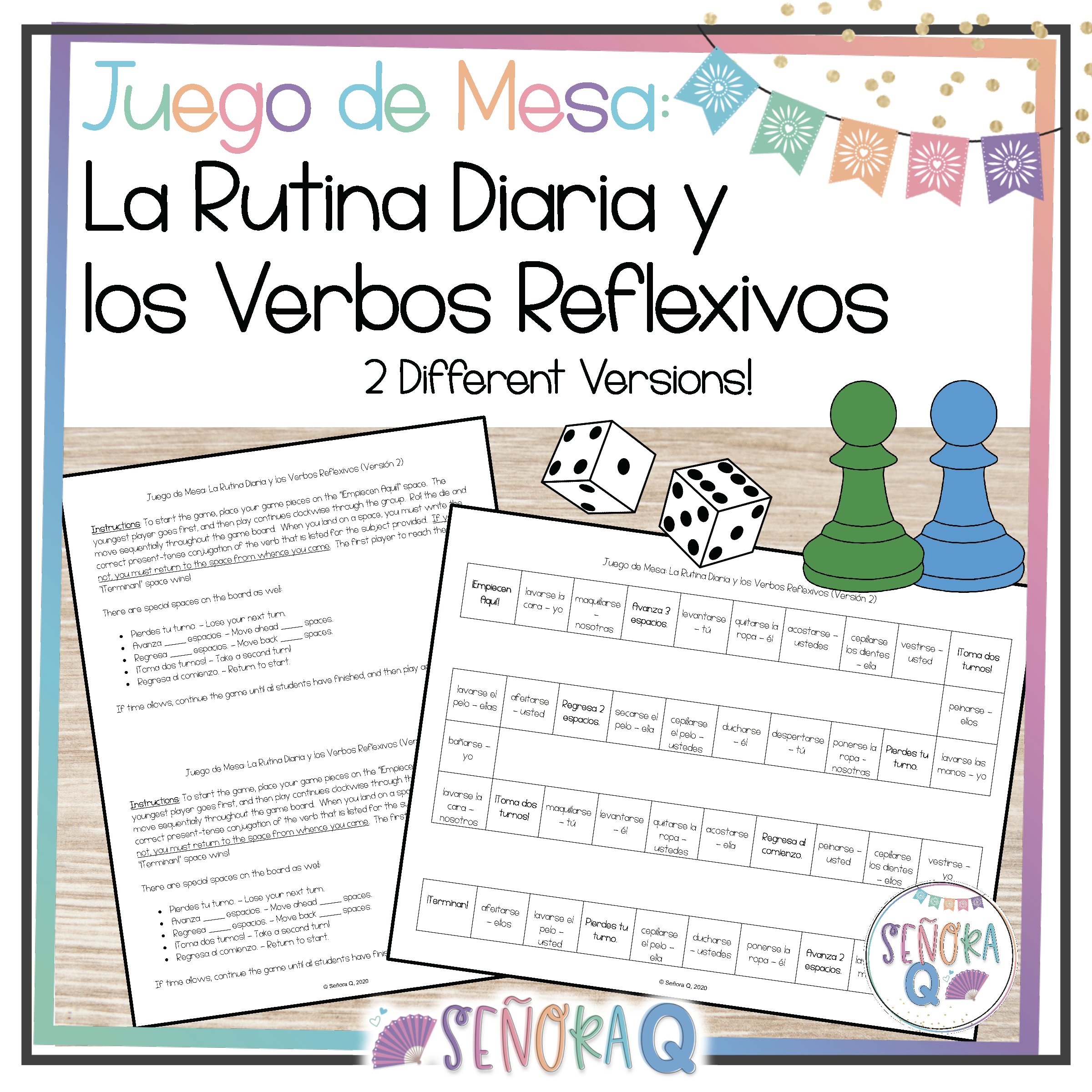 Board Game. This is a fun and engaging way to practice or to review! Make a game board template (or you can get one online), and fill in the spaces with questions/prompts pertaining to daily routine vocabulary and reflexive verbs! Once you’ve made your game, you can use it for years to come! If you’d like to play a board game, but would prefer NOT to make it yourself, I’ve got you! Here’s a ready-to-print board game that you can use in your classroom today!