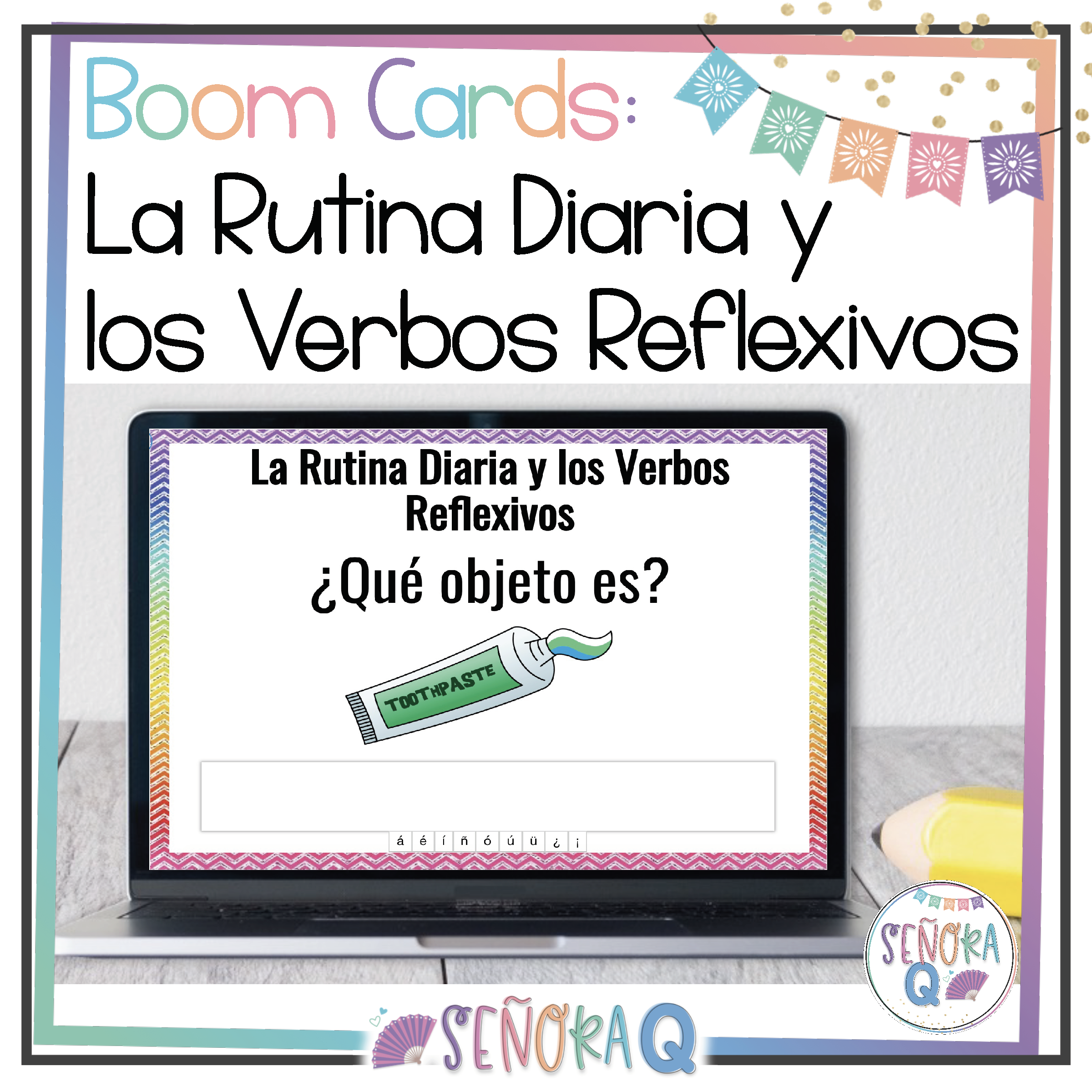 Boom Cards. Boom Cards are self-checking digital task cards that you can easily assign to students to have them practice at home or in class when you’re not there! The really nice thing about Boom Cards is that students receive immediate feedback about how they’re doing. You don’t need a paid account to assign Boom Cards, but there are some nice features available with an upgraded account, such as detailed student reports! If you’re interested in trying Boom Cards, here’s a deck on daily routine and reflexive verbs!