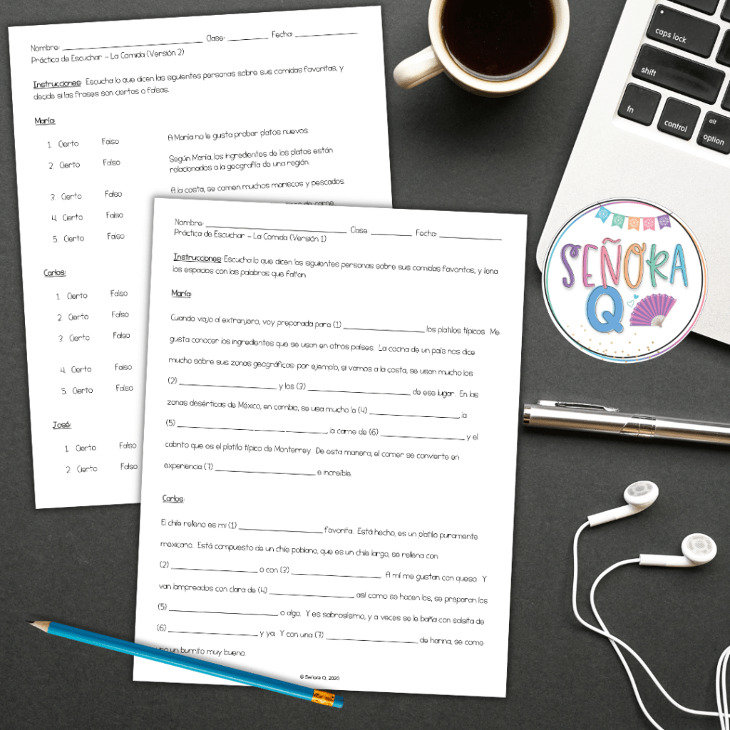 So, where can you get these audio files? There are certain free websites out there, such as the University of Texas site and Spanish Listening that allow you to choose audios based on topic or students’ proficiency level, which is great! However, you can use more complex audios and modify the task you want your students to complete. For example, have your Spanish 1 students listen to a short news clip. How did the hosts greet each other? Did they mention the day or the date? You will likely be able to pick out something your students should understand. Focus on that!