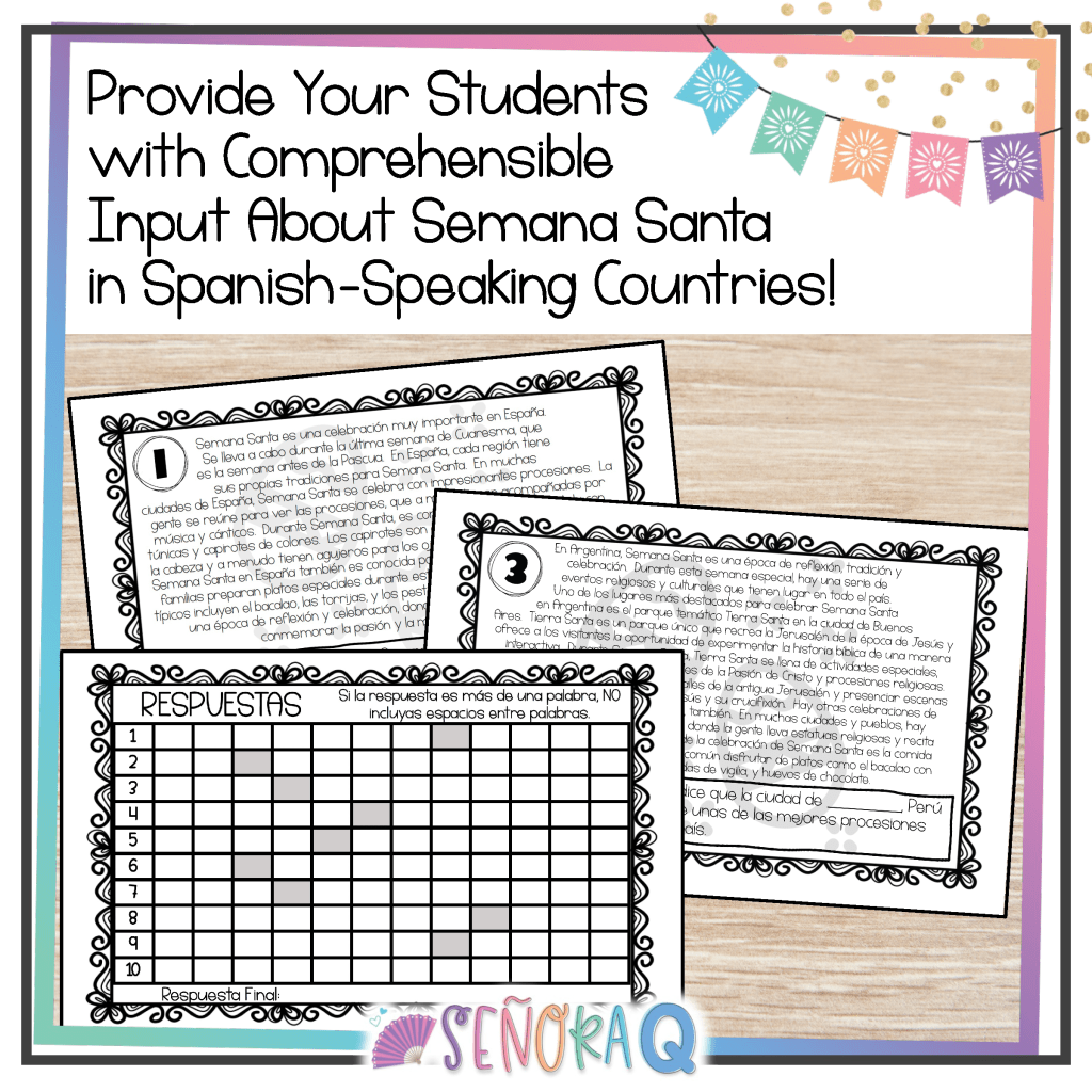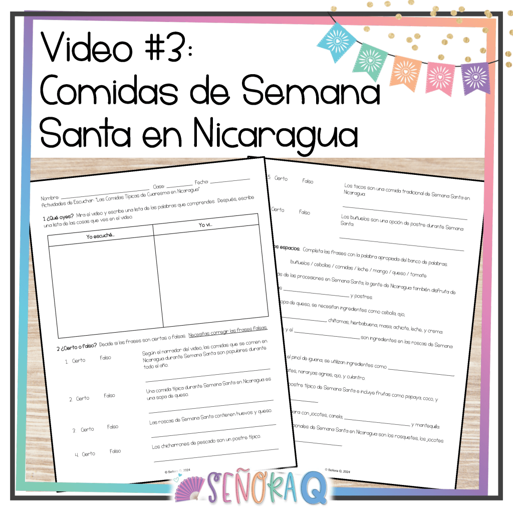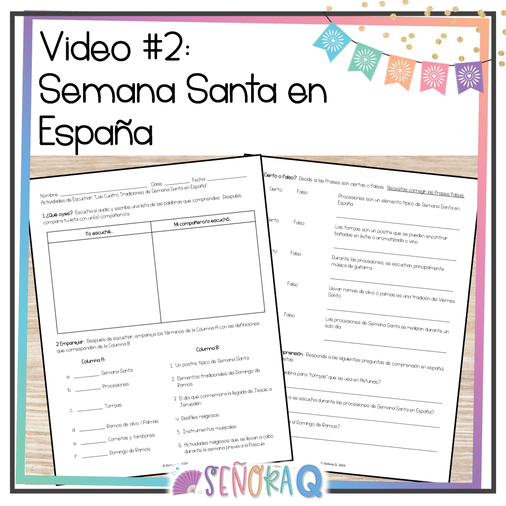 If you want to teach your students about the celebration of Semana Santa in Spanish-speaking countries while also strengthening students’ listening comprehension skills, this activity is for you! This authentic and comprehensible activity allows students to immerse themselves in the rich and diverse Semana Santa traditions of different Spanish-speaking countries as they watch 3 authentic videos and complete corresponding activities.