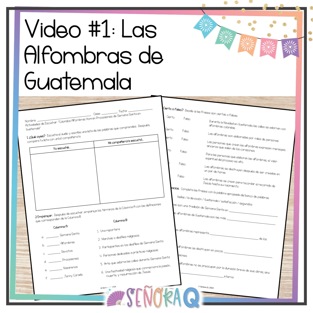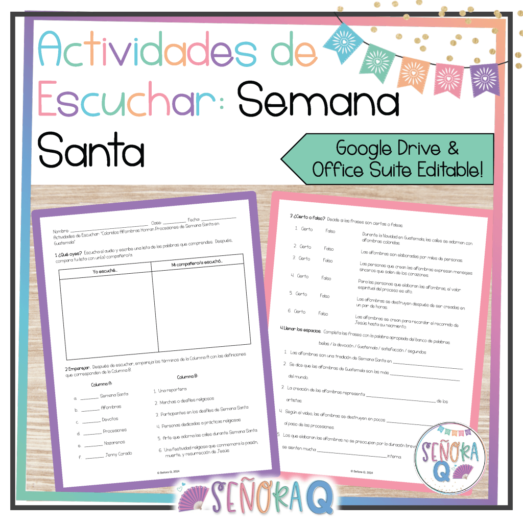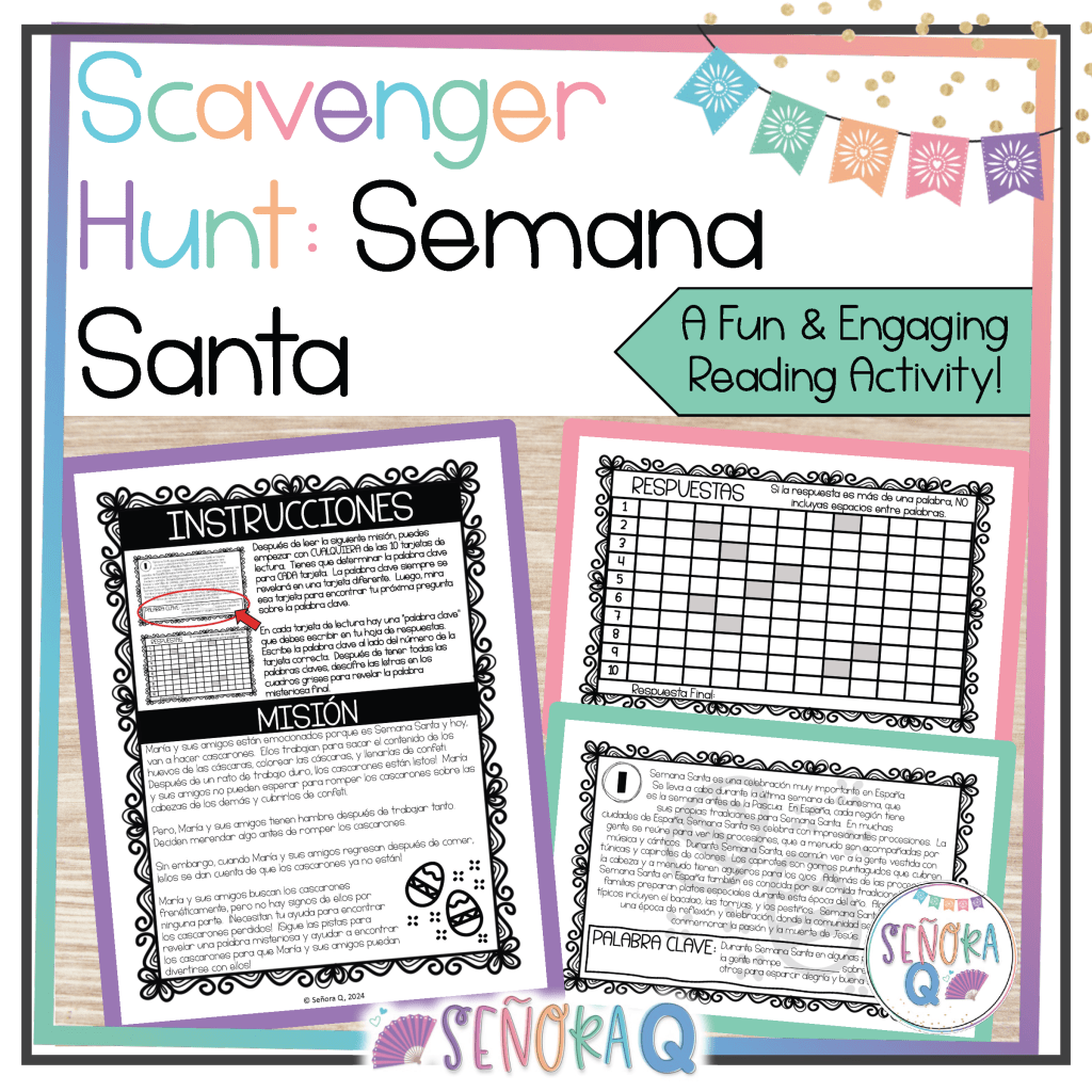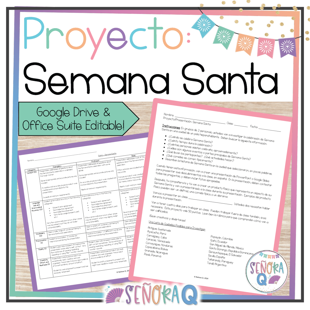 If you want to teach your students about the celebration of Semana Santa in Spanish-speaking countries while also strengthening students’ listening comprehension skills, this activity is for you! This authentic and comprehensible activity allows students to immerse themselves in the rich and diverse Semana Santa traditions of different Spanish-speaking countries as they watch 3 authentic videos and complete corresponding activities.