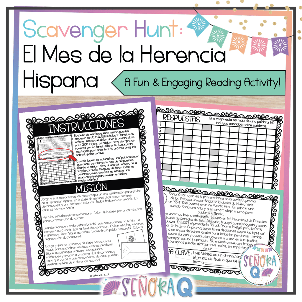 Celebrating Hispanic Heritage Month in Spanish class allows us to go beyond teaching vocabulary and grammar. It provides us with the incredible opportunity to connect students with stories of resilience, creativity, and leadership. Whether you decorate your classroom with posters, energize your students with bingo and Jeopardy, or get them moving with scavenger hunts, the goal is the same: to help students see the importance of Hispanic and Latino contributions while practicing Spanish in meaningful ways.